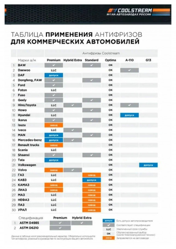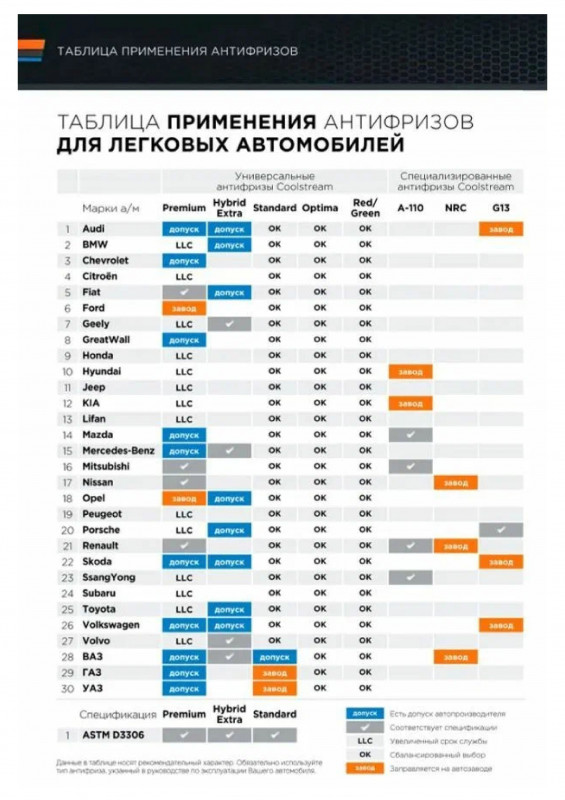 Разумный выбор для автомобилей, где замена охлаждающей жидкости производится сравнительно часто.Повышенная эффективность охлаждения двигателя.Высокая стабильность эксплуатационных свойств.Улучшенная совместимость с пластиками и эластомерами