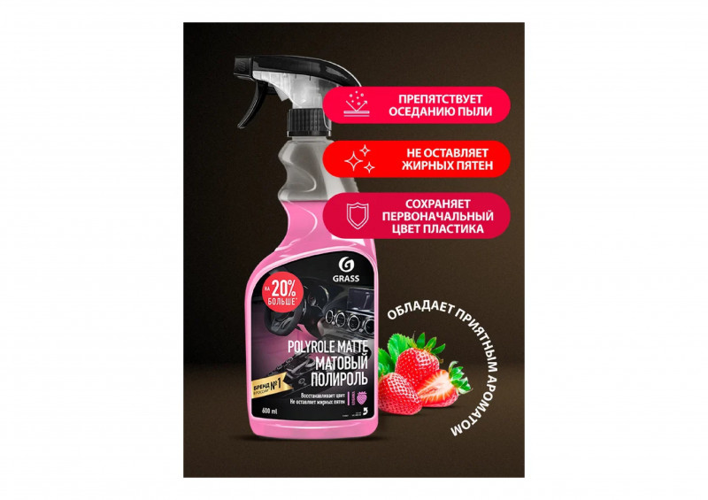 Средство для полировки пластика матовый блеск 600мл Grass Polyrole Matte клубника bubble