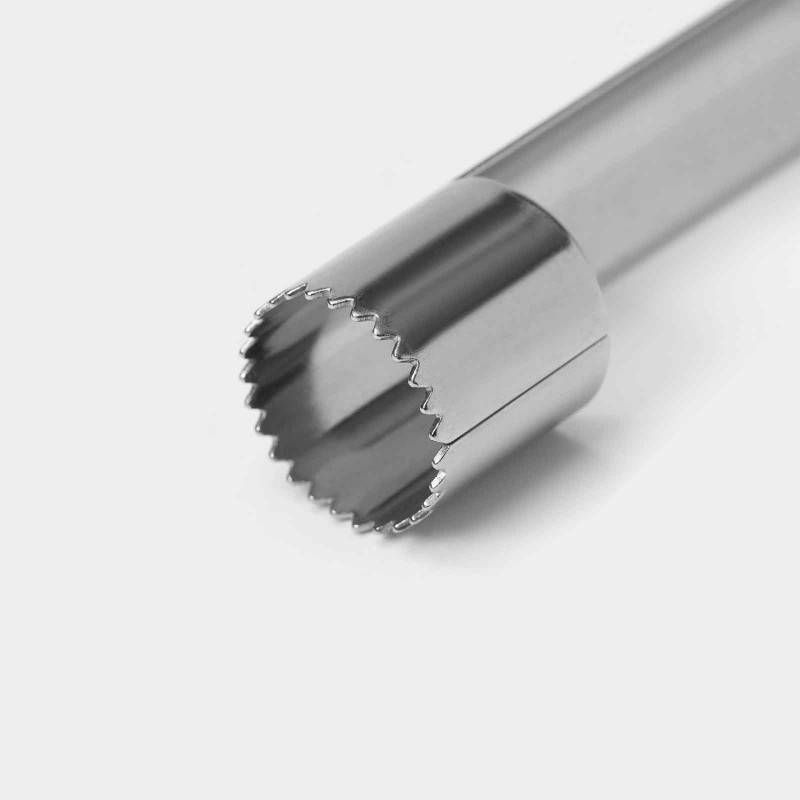 Нож для сердцевины – простой гаджет, который быстро избавит плод от косточек и плодоножки, оставив в центре аккуратное отверстие цилиндрической формы. Изделие имеет удобную ручку, которая не скользит в руке. Безопасное приспособление значительно облегчит процесс нарезки фруктов. Важно, что после такой процедуры яблоки и груши сохранят свой привлекательный внешний вид!