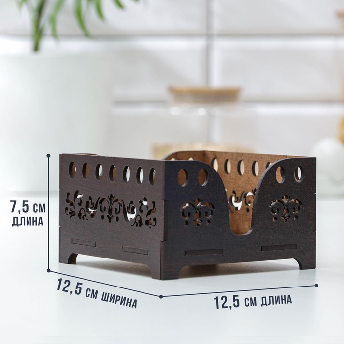 Салфетница Мокко с салфетками 12,3х12,3см деревянная