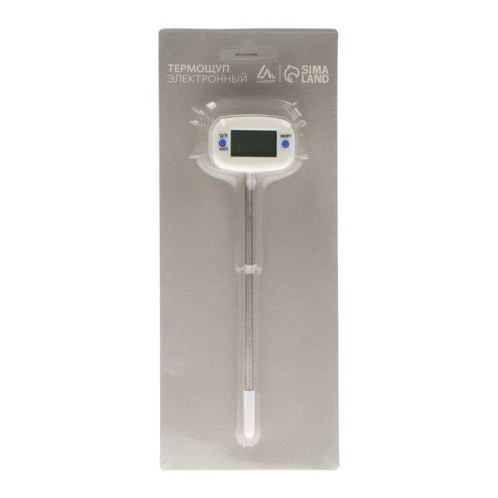 Термощуп кухонный поможет измерить температуру блюда. Используйте его для рыбы, мяса, напитков, детского питания, выпечки и жидкой еды. Устройство может измерить температуру в диапазоне от -50 до +300 °C. Длина щупа из нержавеющей стали 13 см. Для вашего удобства устройство может измерять температуру в градусах Цельсия или Фаренгейта.