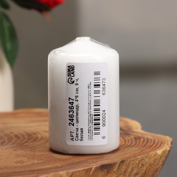 Свеча-цилиндр,4х6 см, 9ч, белая