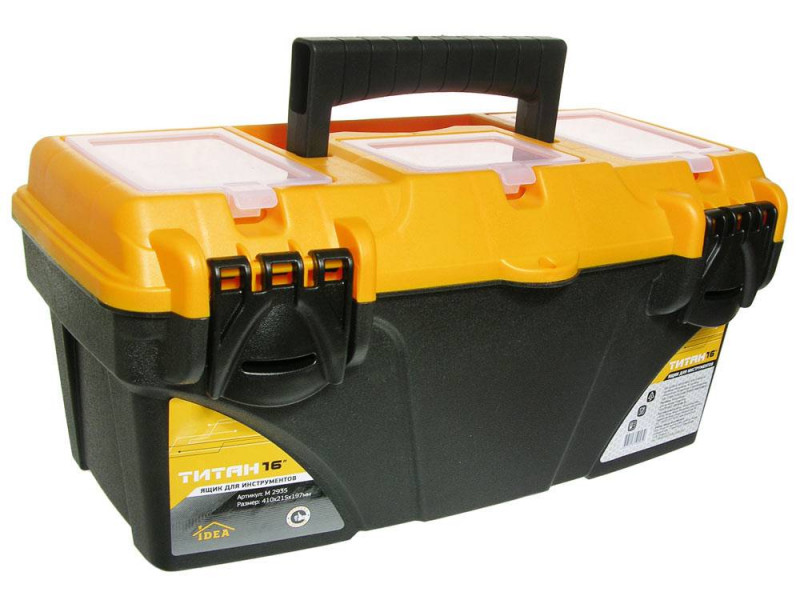 Ящик для инструментов IDEA ТИТАН 16' М 2931 подойдет для хранения небольшого ручного инструмента. Конструкция имеет высокую прочность. Это повышает удобство использования и простоту хранения и транспортировка. Благодаря использованию полимеров конструкция устойчива к перепадам температуры - ее не ведет, не деформирует. Подходит для сложных условий эксплуатации.