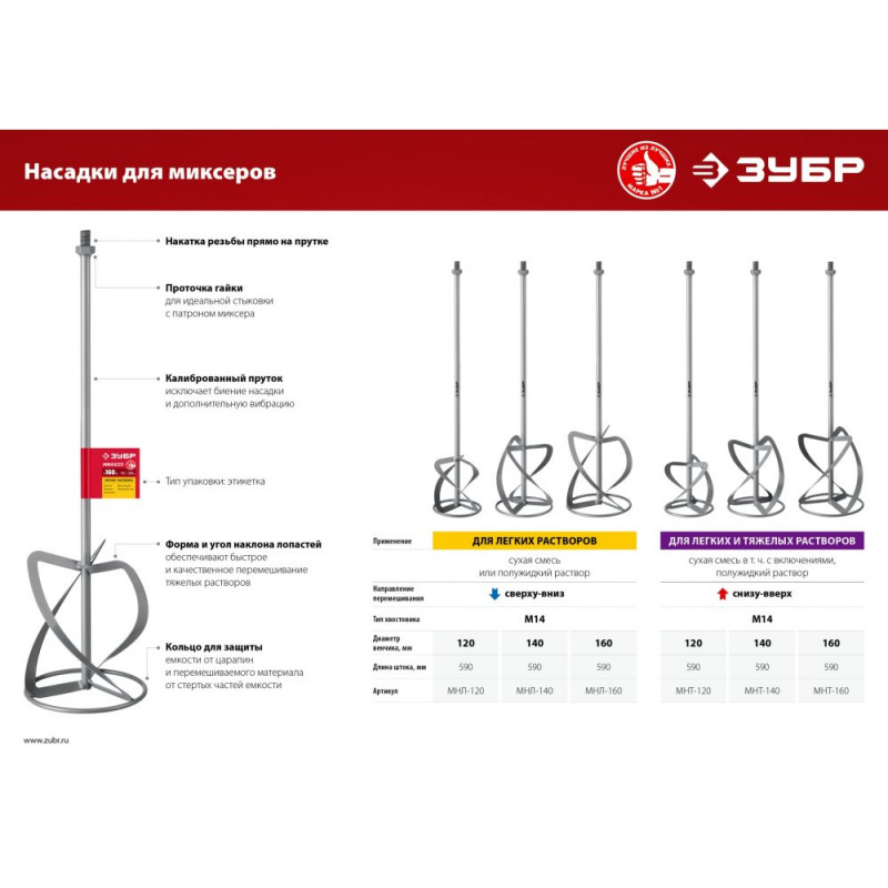 Для сохранения инструмента в рабочем состоянии, а так же предусмотренной гарантией завода изготовителя, наш интернет-магазин (zubr36.ru) рекомендует использовать ЗУБР М14, d140 мм, насадка-миксер для легких растворов "сверху-вниз" (МНЛ-140) строго по назначению.