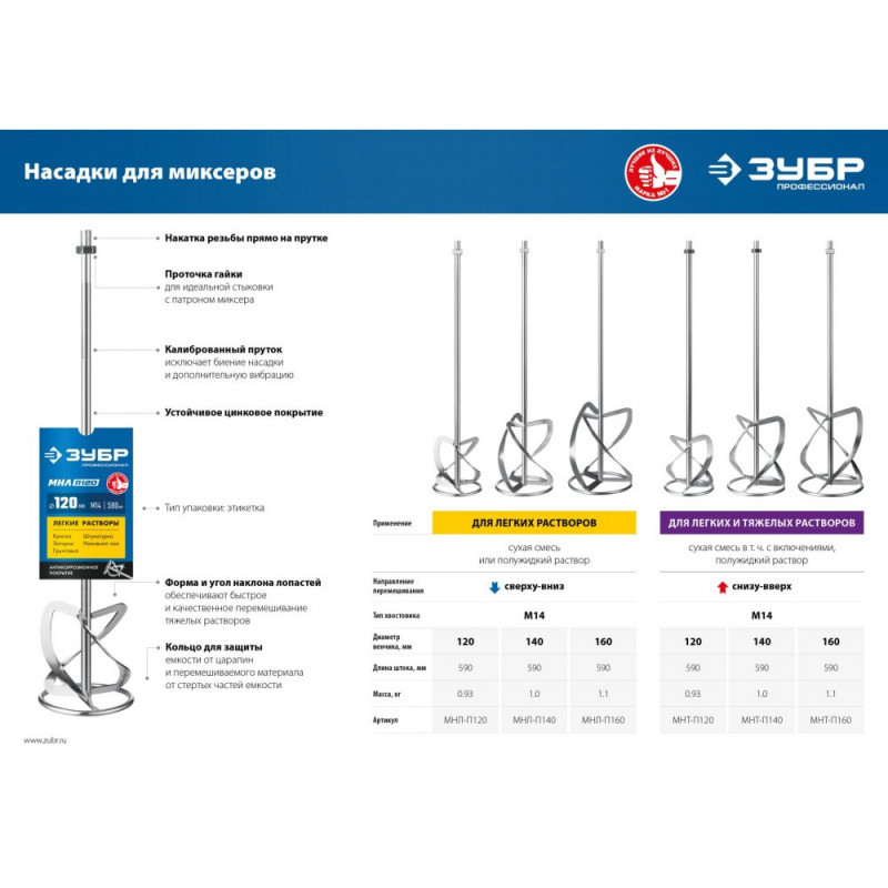 Насадка с лопастями для перемешивания тяжелых растворов (бетон, гипс, стяжка, смола, плиточный клей, известково-глиняный раствор). Используется совместно с ручными миксерами ЗУБР ЗМР-1200Э-1, МР-1050-1, МР-1100, МР-1400-2 и МР-1600-2. Не поддается коррозии и не деформируется даже при эксплуатации в тяжелых условиях. Сделано в России